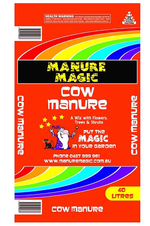 Manure Magic Cow Manure is an all- purpose organic fertilizer suitable for fertilizing trees, shrubs, lawns, vegetables and flower gardens.